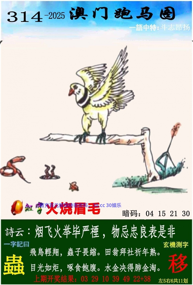 318期:开奖时间2025年11月14(星期五)晚9:30开(农历九月廿五 猪冲蛇)
